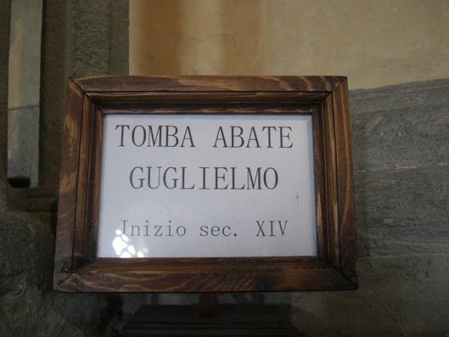 E' la tomba di prima ma non ci stavo io è dell'Io è dell'Abate Guglielmo sempre del XVI secolo e lui riposa in pace li dentro, abbiamo visitato tutto nei minimi particolari, quindi la visita dovrebbe chiudersi qui, invece notiamo un portone e basta solo infilare una carta credito nella fessura (Carlo ne sa una più del diavolo) per alzare la chiusura, lo apriamo e ci troviamo all'esterno sul terrazzo..